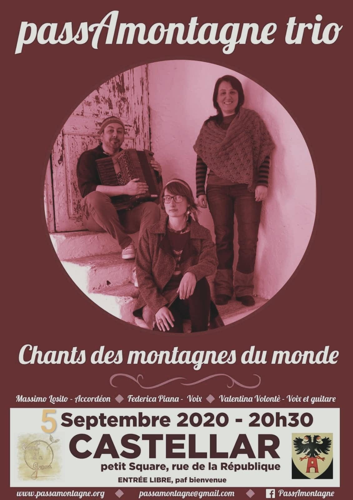 passAmontagne trio en concert Castellar + Stage chant populaire italien à Menton 06500