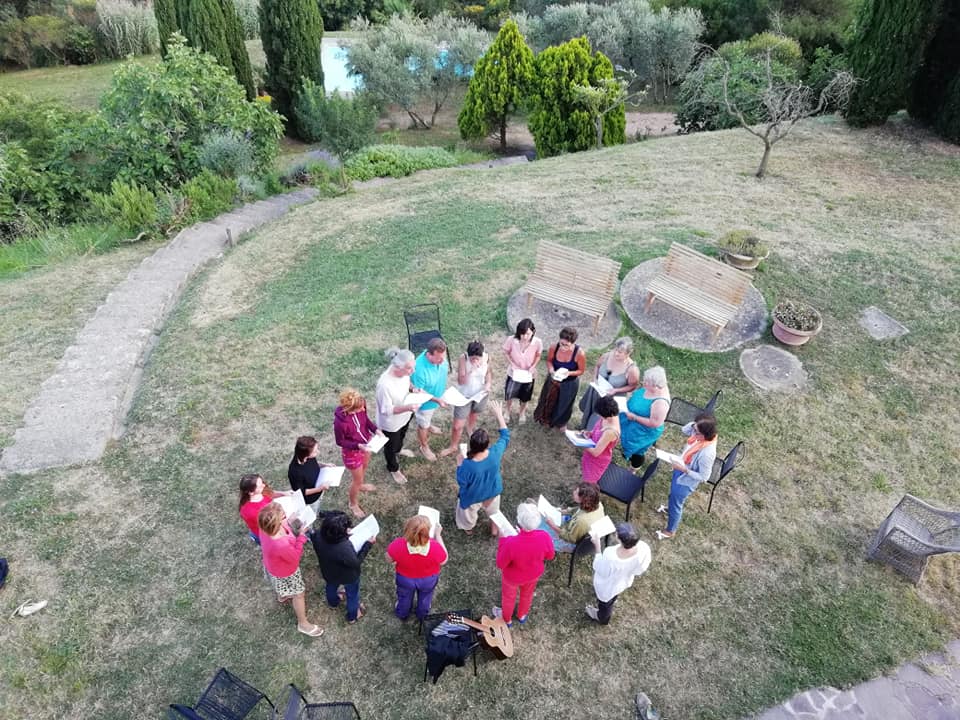 Pendant nos stages, spontanément, se crée une micro-communnauté chantante stimulée par des moments de partage des nos mémoires, des jeux qui favorisent l'écoute, des repas partagés..