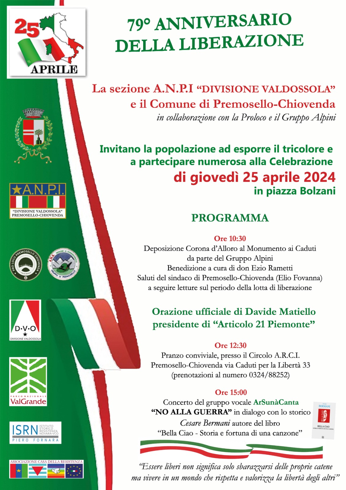 Anche quest'anno ArsunàCanta sarà presente al 25 aprile con ANPI Premosello Chiovenda .