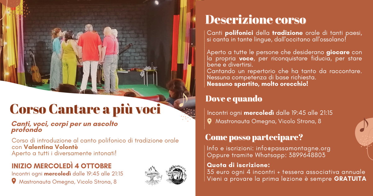 Se stai pensando di approcciarti al canto polifonico per la prima volta, questo corso è la tua occasione!