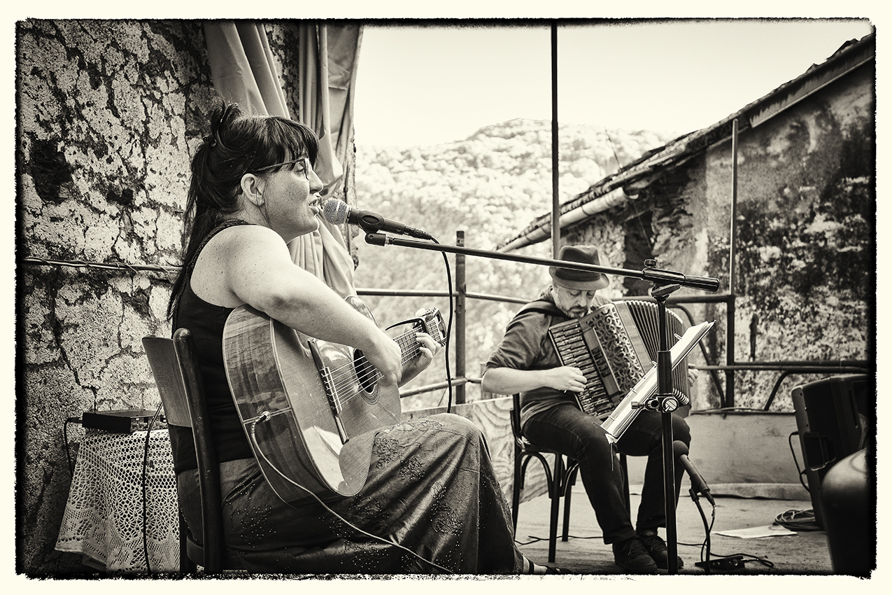 Il nostro concerto è un viaggio attraverso le montagne di tutto il mondo, oltrepassiamo le frontiere geografiche e stilistiche contrabbandando suoni, ritmi, melodie e parole al confine fra lingue e culture diverse, trovando punti di contatto tra le persone grazie ai canti della tradizione orale e alla loro storia.